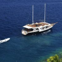 Le Gurahali est un bateau construit aux Maldives qui allie architecture traditionnelle avec ses deux mats emblématiques et confort moderne grâce à son équipement dernier cri.